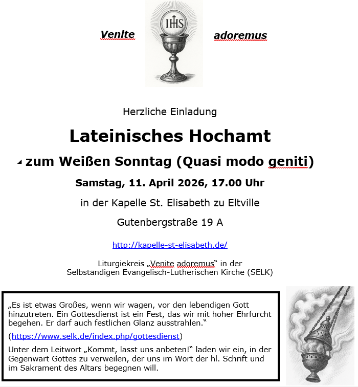 Samstag, 11. April 2026, 17.00 Uhr (Quasi modo geniti, Lateinisches Hochamt)